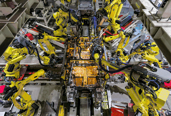 焊装车间全线拥有128台焊装领域顶尖的意大利柯马、瑞典ABB机器人,可以完成包括车身总成、地板总成、侧围总成等七大总成的全自动化生产,实现了低能耗、高强度车身以及高品质的制造目标。