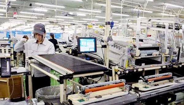 由于设备自动化程度很高,厂房灯光绝大多数处于关闭状态,厂区内有少量工作人员。厂房屋顶铺设着6兆瓦的太阳能电池板,为灯光系统提供电能。在传统连接器零件厂房,生产制程运用工业4.0物联网进行管控。